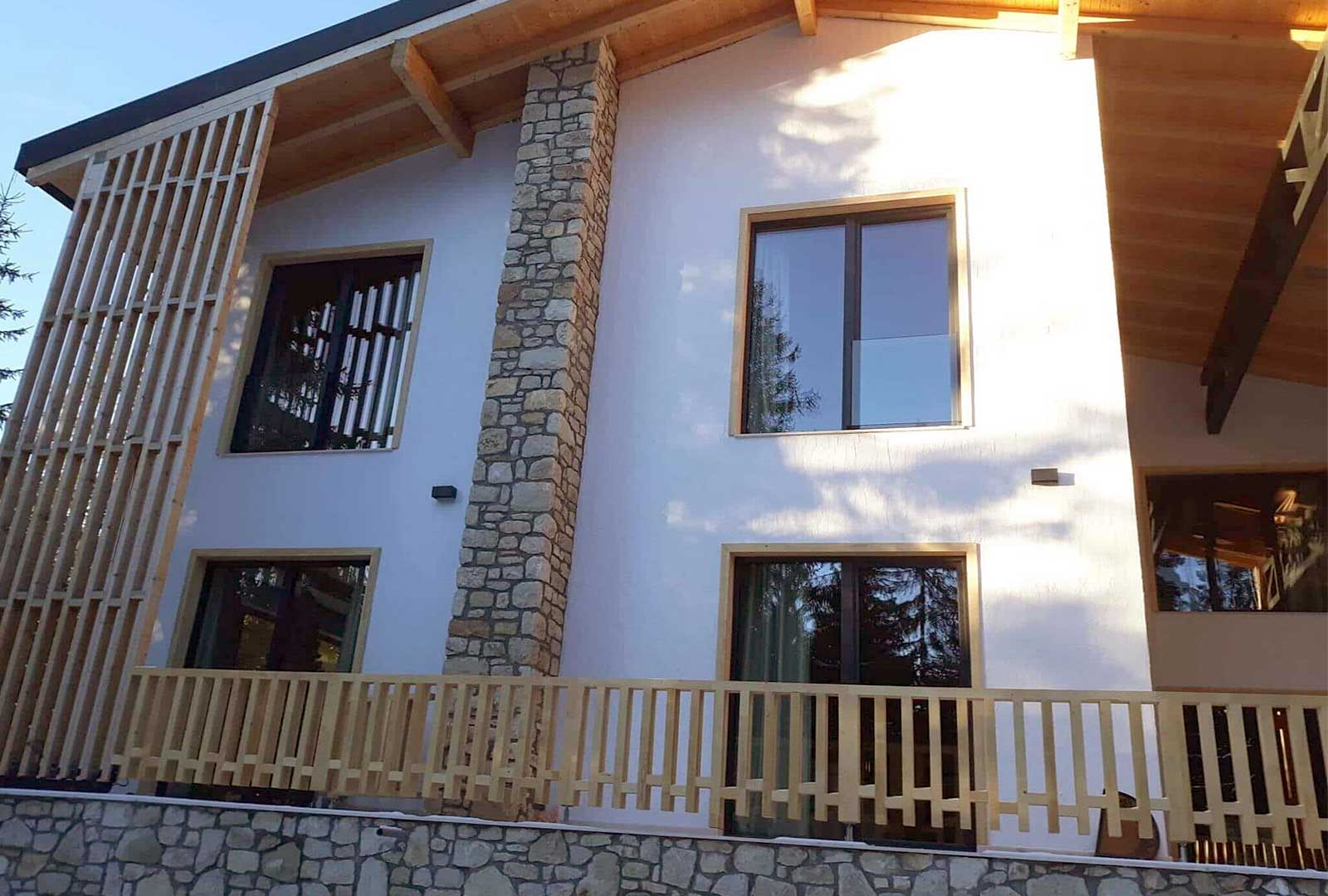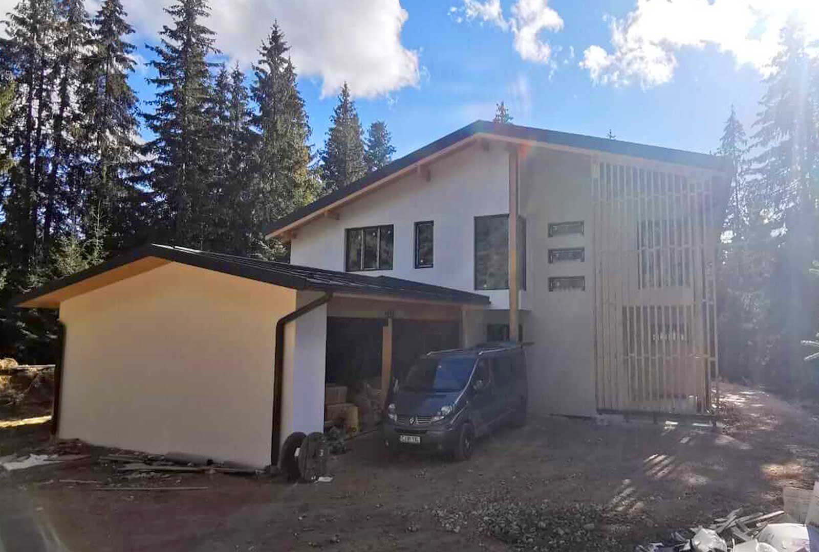 –5 dormitoare cu baie și dressing, 2 living-uri, 1 bucătărie open space cu living, wellness cu saună, cameră tehnică, skiroom, garaj