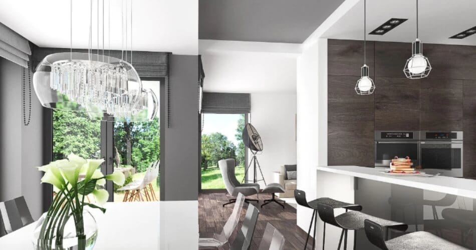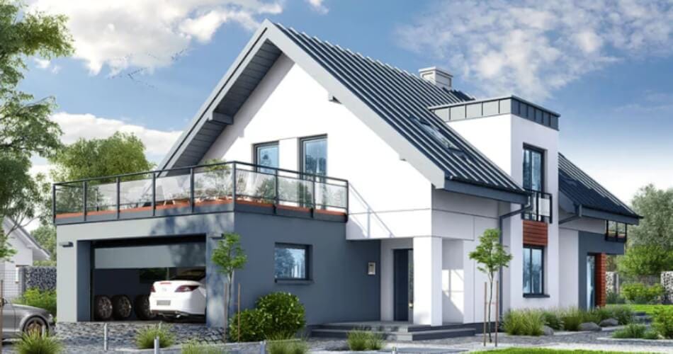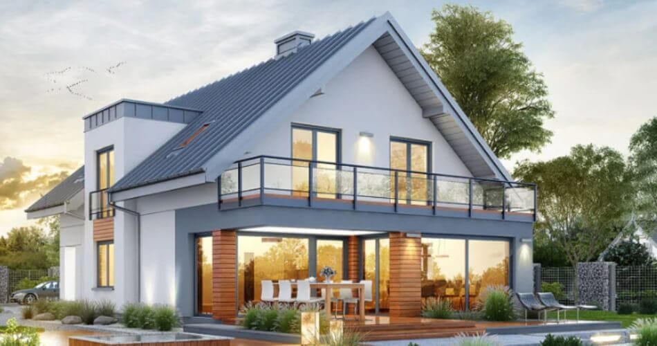 Va prezentam o casa unifamiliara,cu regim de inaltime P + 1 si un design modern oferit de piatra naturala imbinata cu lemnul termotratat sub forma de lambriuri.