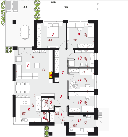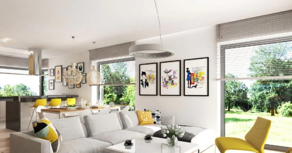 Celestit este o casa amenajata pe un singur nivel, cu suprafata generoasa si o atmosfera calduroasa oferita de compartimentarea inteligent gandita.