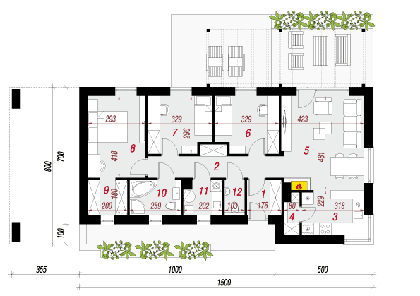 Structurata pe un singur nivel, aceasta este compusa dintr-un living open space, luminos, cu iesire spre tareasa, ce se imbina perfect cu bucataria printr-o trecere marcata cu un semnineu modern. De asemenea, aceeasta mai dispune si de 1 dormitor matrimonial si inca 2 dormitoare de dimensiuni mai mici, 1 dressing, 2 bai si 1 spalatorie.
