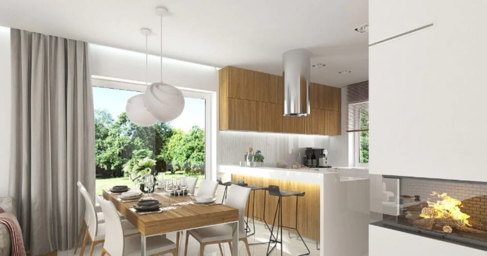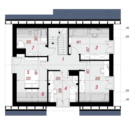 Proiectul cuprinde o casa spatioasa, cu un design traditional, accesorizat cu lambriuri si deck din lemn termotratat, la care se adauga sarpanta care vine perfect in completarea designului.